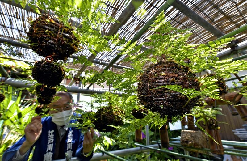 Hanging ferns known as tsuri-shinobu are seen at the Yorozuen shop in Edogawa Ward, Tokyo. Tsuri-shinobu were invented by a gardener in the Edo period (1603-1867) as a summer gift and eventually became a popular household decoration. Yorozuen is the only shop in Tokyo that specializes in these hanging ferns, and will produce about 1,000 of them by mid-August. This is fewer than usual, due to the cancellation of department store events and festivals amid the pandemic.