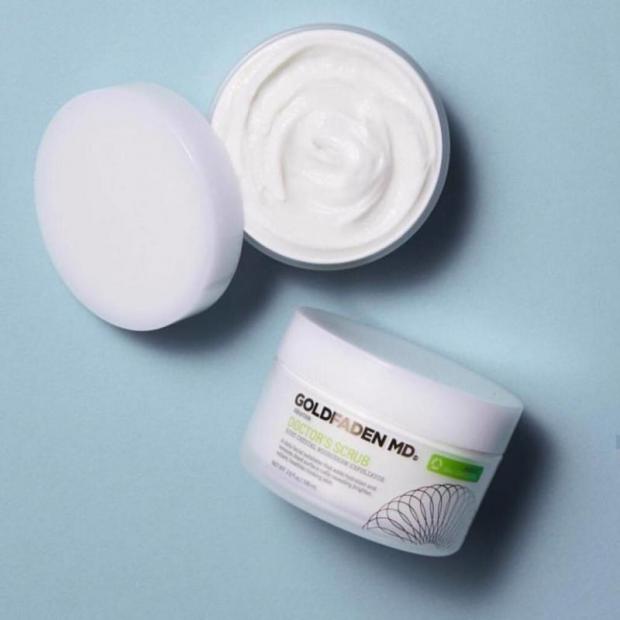 An at-home microdermabrasion can be achieved by applying Doctor's Scrub Ruby Crystal Microderm Exfoliator, which removes dead cells from the surface while hydrating the skin through hyaluronic acid.