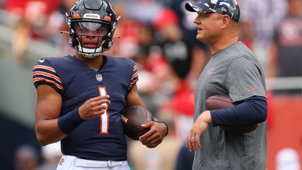 Through four games, Bears quarterback Justin Fields is last in the NFL in passer rating (58.7), last in passing yards (471) and last in completion percentage (50.7). But first in the heart of offensive coordinator Luke Getsy.