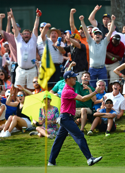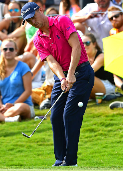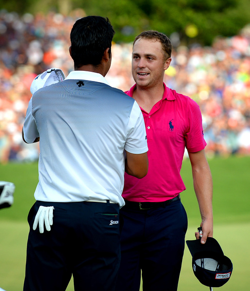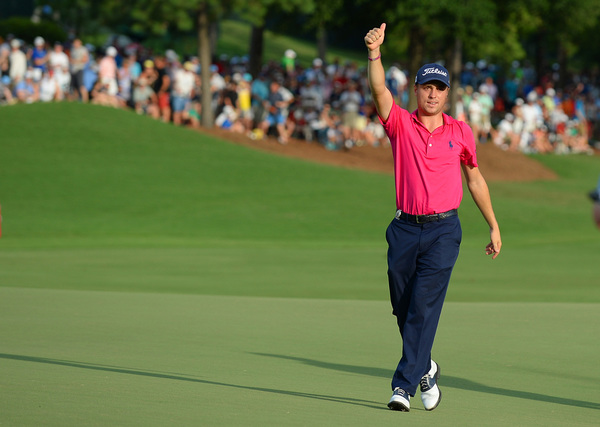 Thomas had six birdies in his final round, none more dramatic than hole No. 10, a par 5. Thomas' putt rolled to the edge of the cup. He stared for a few seconds, then turned away from the hole, just as the ball slipped in.