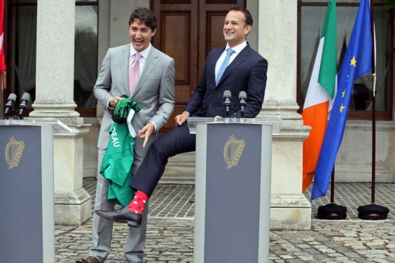 Mr Varadkar, who has previously expressed admiration for Mr Trudeau's leadership style, wore Canada-themed socks to the earlier meetings.