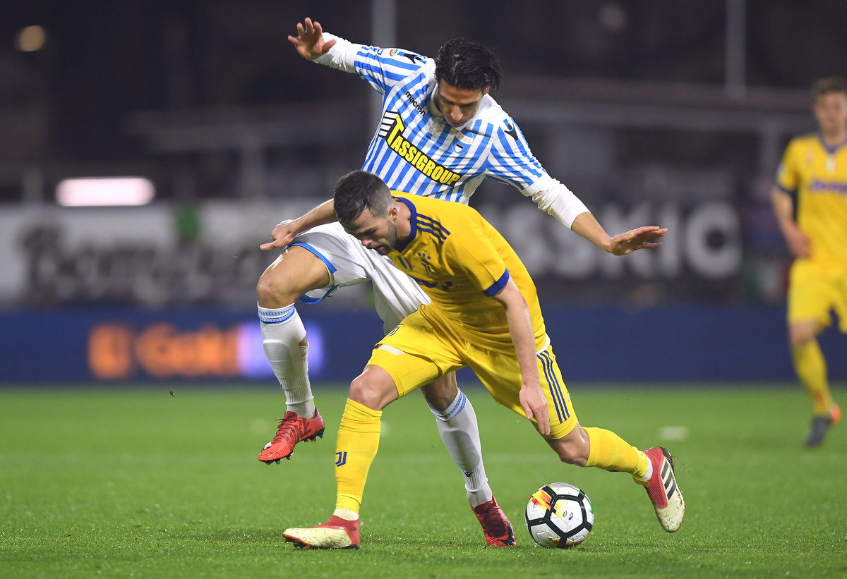 SPAL's Filippo Costa did well to block Alex Sandro after he was sent through by Douglas Costa and Paulo Dybala curled a Juventus free kick on to the roof of the net just before halftime.