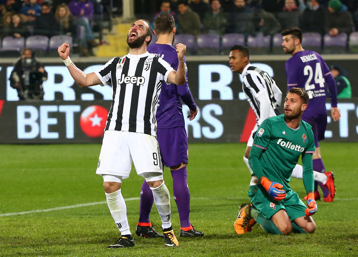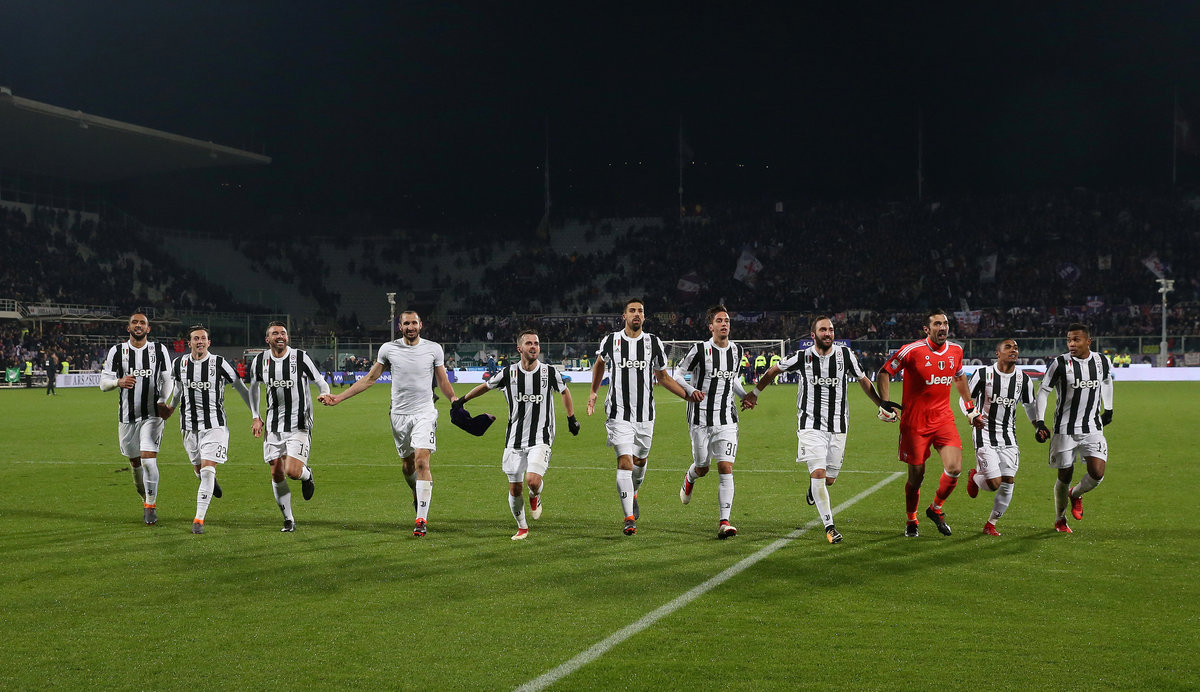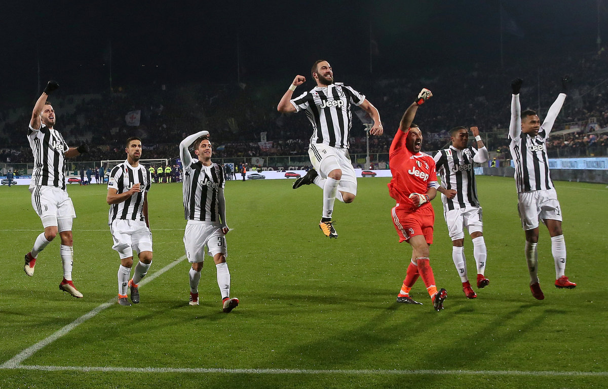 Soccer Football - Serie A - Fiorentina vs Juventus - Stadio Artemio Franchi, Florence, Italy - February 9, 2018 Juventus players celebrate in front of their fans after the match REUTERS/Alessandro BianchiSoccer Football - Serie A - Fiorentina vs Juventus - Stadio Artemio Franchi, Florence, Italy - February 9, 2018 Juventus coach Massimiliano Allegri gestures REUTERS/Alessandro BianchiSoccer Football - Serie A - Fiorentina vs Juventus - Stadio Artemio Franchi, Florence, Italy - February 9, 2018 Juventus’ Gianluigi Buffon makes a save from Fiorentina's Cyril Thereau REUTERS/Alessandro BianchiSoccer Football - Serie A - Fiorentina vs Juventus - Stadio Artemio Franchi, Florence, Italy - February 9, 2018 Juventus’ Gonzalo Higuain celebrates after Federico Bernardeschi (not pictured) scored their first goal from a free kick REUTERS/Alessandro BianchiSoccer Football - Serie A - Fiorentina vs Juventus - Stadio Artemio Franchi, Florence, Italy - February 9, 2018 Fiorentina coach Stefano Pioli before the match REUTERS/Alessandro BianchiSoccer Football - Serie A - Fiorentina vs Juventus - Stadio Artemio Franchi, Florence, Italy - February 9, 2018 Fiorentina's Giovanni Simeone in action with Juventus’ Medhi Benatia and Miralem Pjanic REUTERS/Alessandro Bianchi