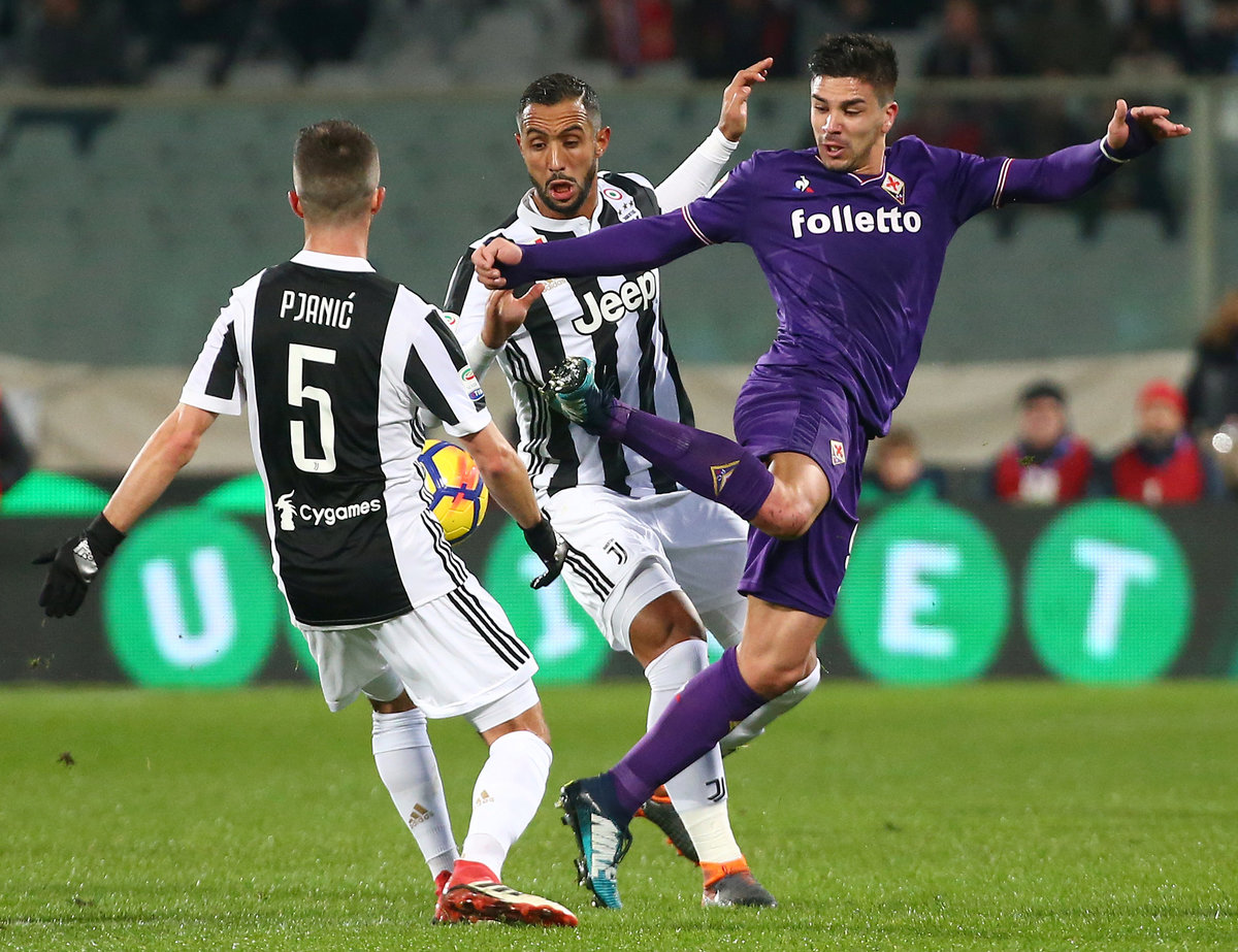 Soccer Football - Serie A - Fiorentina vs Juventus - Stadio Artemio Franchi, Florence, Italy - February 9, 2018 Fiorentina's Giovanni Simeone in action with Juventus’ Medhi Benatia and Miralem Pjanic REUTERS/Alessandro Bianchi