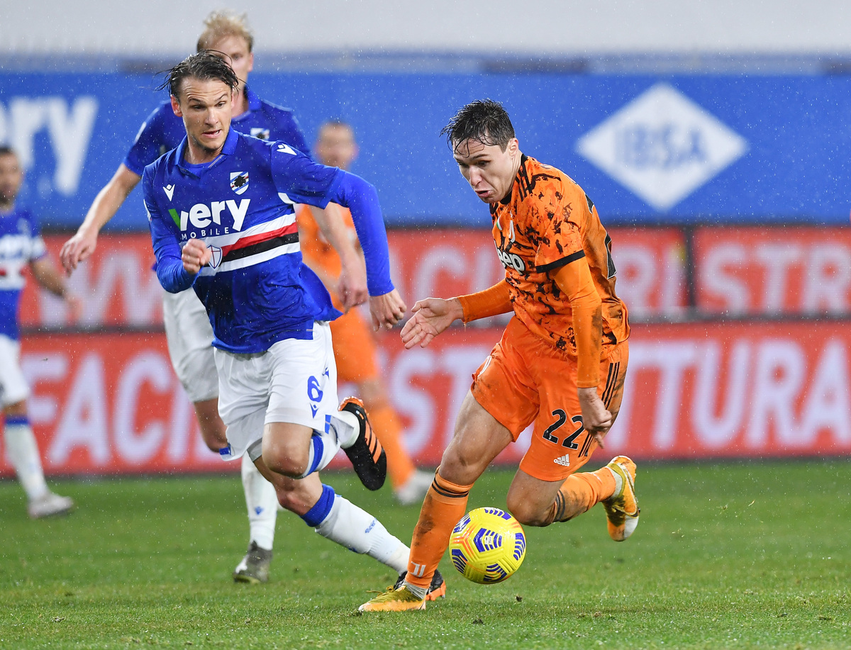 In pouring rain in Genoa, Chiesa got on the end of a fine move to put Juventus in front after 20 minutes.