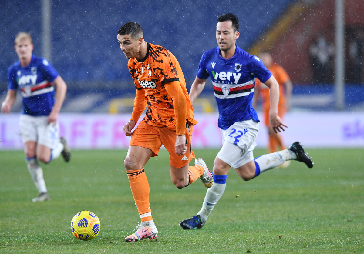 Without a goal in his previous two league games, Cristiano Ronaldo endured a frustrating first half, missing several chances while also being denied by some last-ditch Sampdoria defending.
