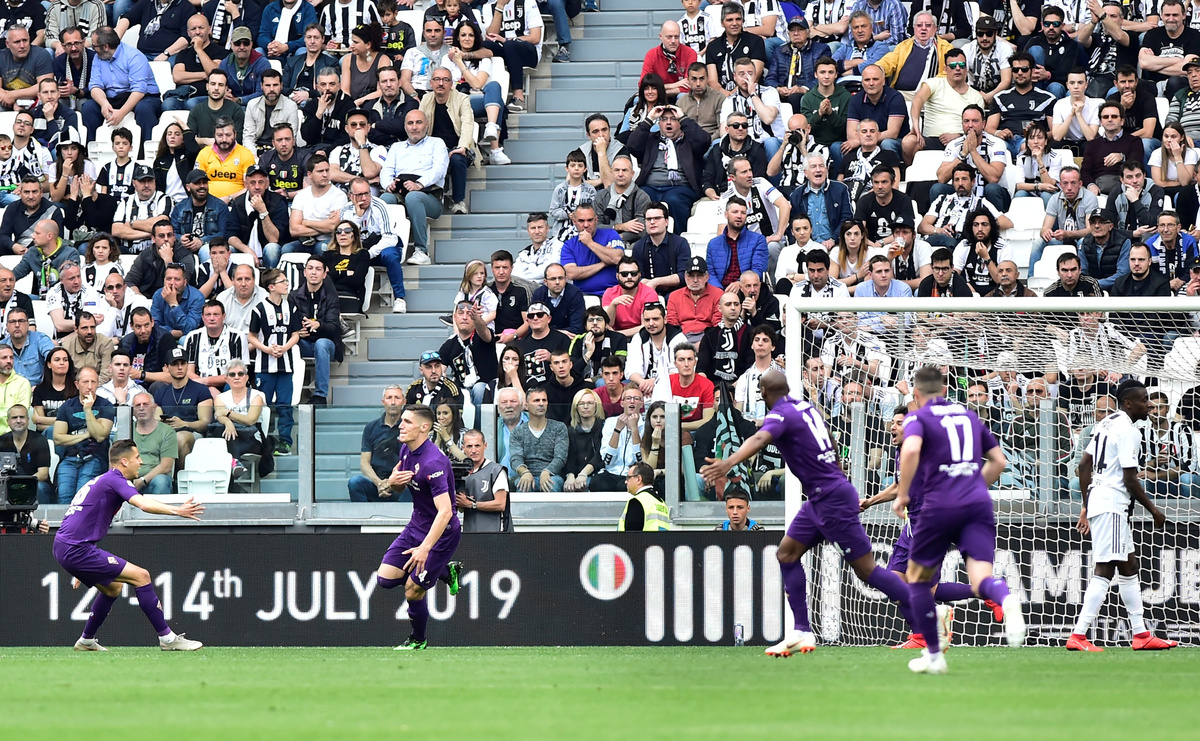 Knocked out of the Champions League by Ajax in the quarter-finals on Tuesday, Juventus fell behind to a Nikola Milenkovic goal in the sixth minute and survived two Federico Chiesa shots against the woodwork before halftime.