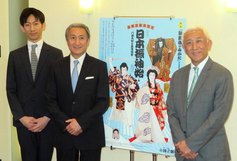 In the following July performance that runs between July 3-24, Nakamura Tokizo in the female role alongside his brother Kinnosuke will perform "Nihon Furisode Hajime." Chikamatsu Monzaemon, a playwright from the Edo period (1603-1867) dubbed the Japanese Shakespeare, wrote the piece based on a story from Japanese mythology, "Yamata no Orochi Taiji," in which a mythical deity slays a snakelike monster with eight heads and eight tails.