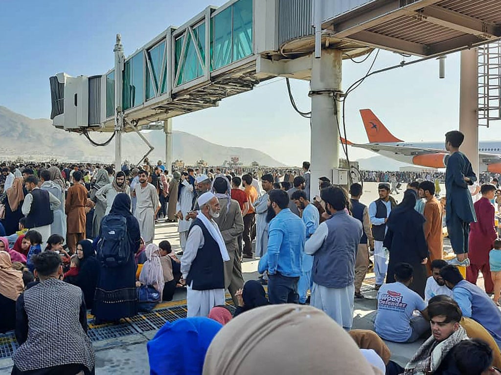 Videos depicted chaotic scenes at Kabul airport on Sunday, the only way out for thousands of people following rapid advance of the Taliban into the capital.