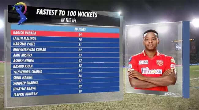 NEW DELHI: Punjab Kings paceman Kagiso Rabada scripted history on Thursday as he became the fastest bowler to take 100 IPL wickets during the match against Gujarat Titans at the IS Bindra Stadium in Mohali.