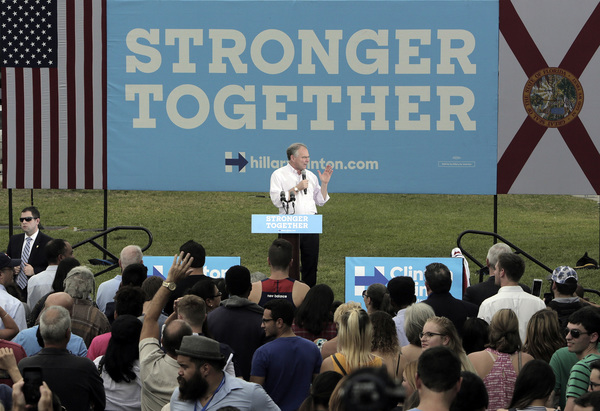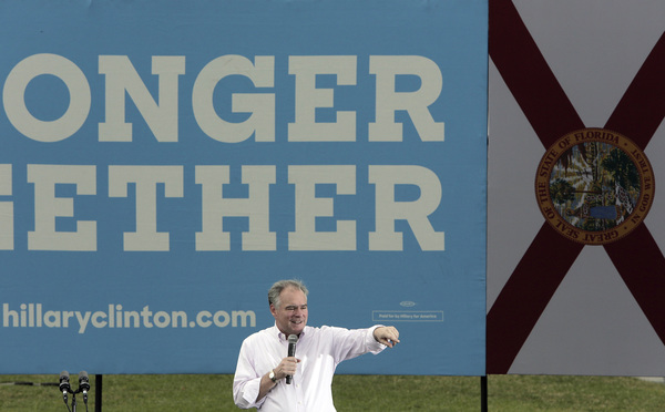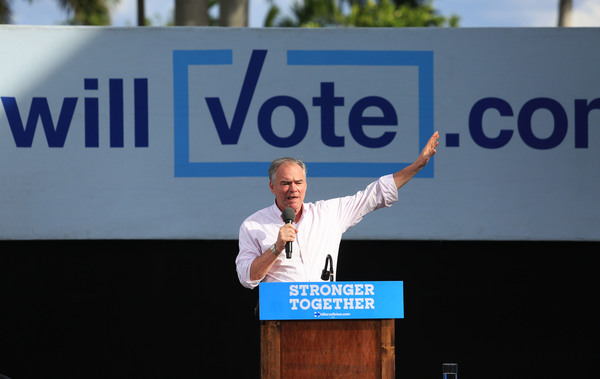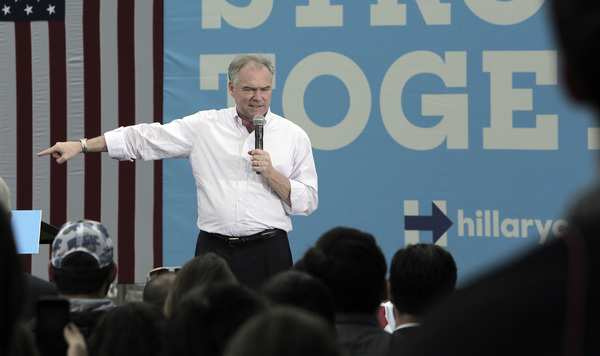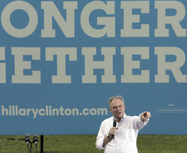 "After Election Day, the public expects us to reach across the aisle. That's what I have done in my career in Virginia and now in the Senate, and that's Hillary's track record too," he said.