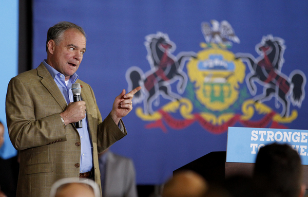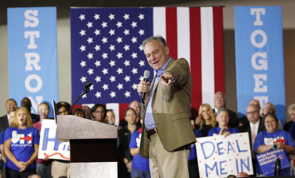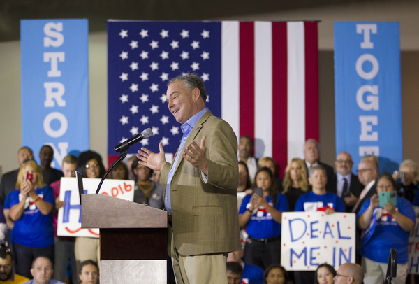 PHILADELPHIA _ Democratic vice presidential nominee Tim Kaine told supporters gathered at a South Philadelphia union hall Wednesday night that his and Hillary Clinton's campaign is one of underdogs and encouraged everyone to vote for their ticket in November.