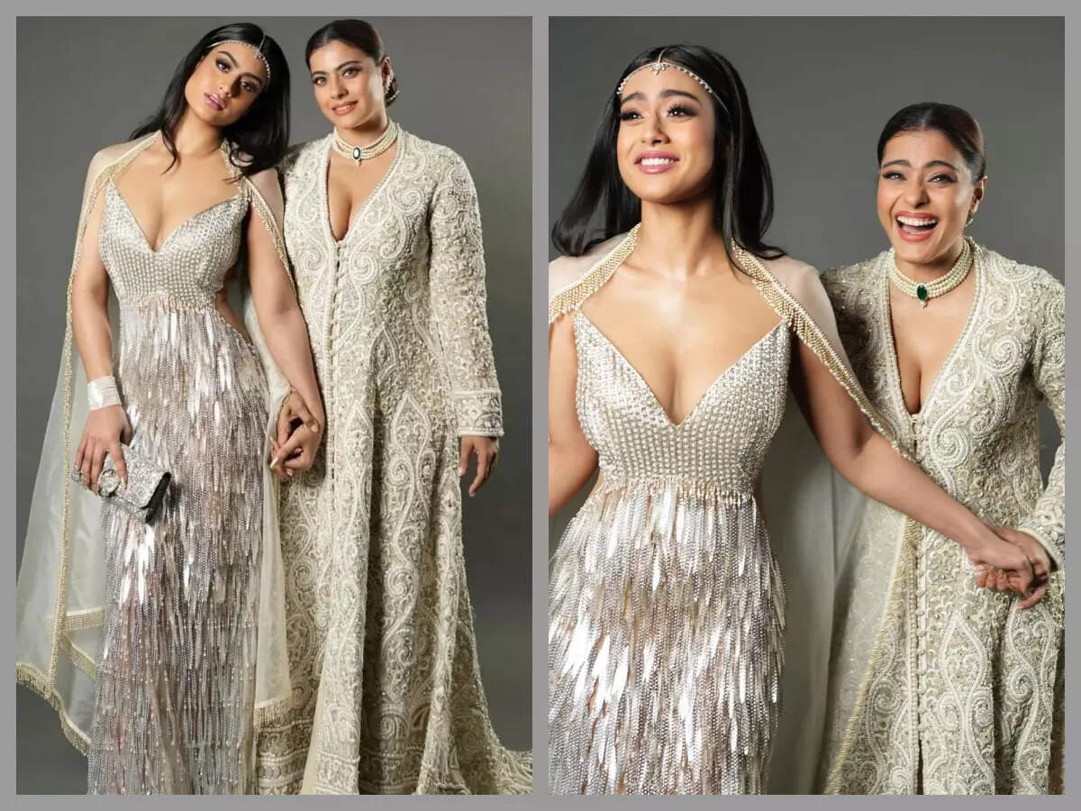 Dressed in their glamorous outfits, the mother-daughter duo looks stunning as ever. While Nysa stunned in a silver shimmery cutout dress with a plunging neckline, Kajol looked gorgeous in a white outfit which she paired with an emerald necklace. She captioned her post, ‘Mini me and me! Started off all graceful and then we became human’.