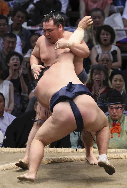 In another bout, No. 1 maegashira and former ozeki Kotoshogiku managed to avoid a fourth straight loss by slapping down ozeki Goeido (2-2).