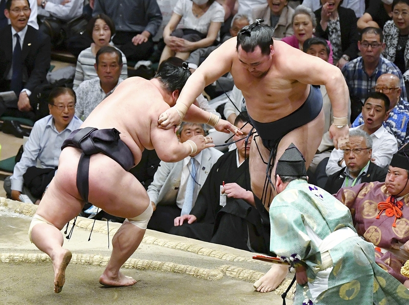Asanoyama was ruled the winner, although only after a brief moment of confusion when the ringside judge explaining the decision mixed up the wrestlers.
