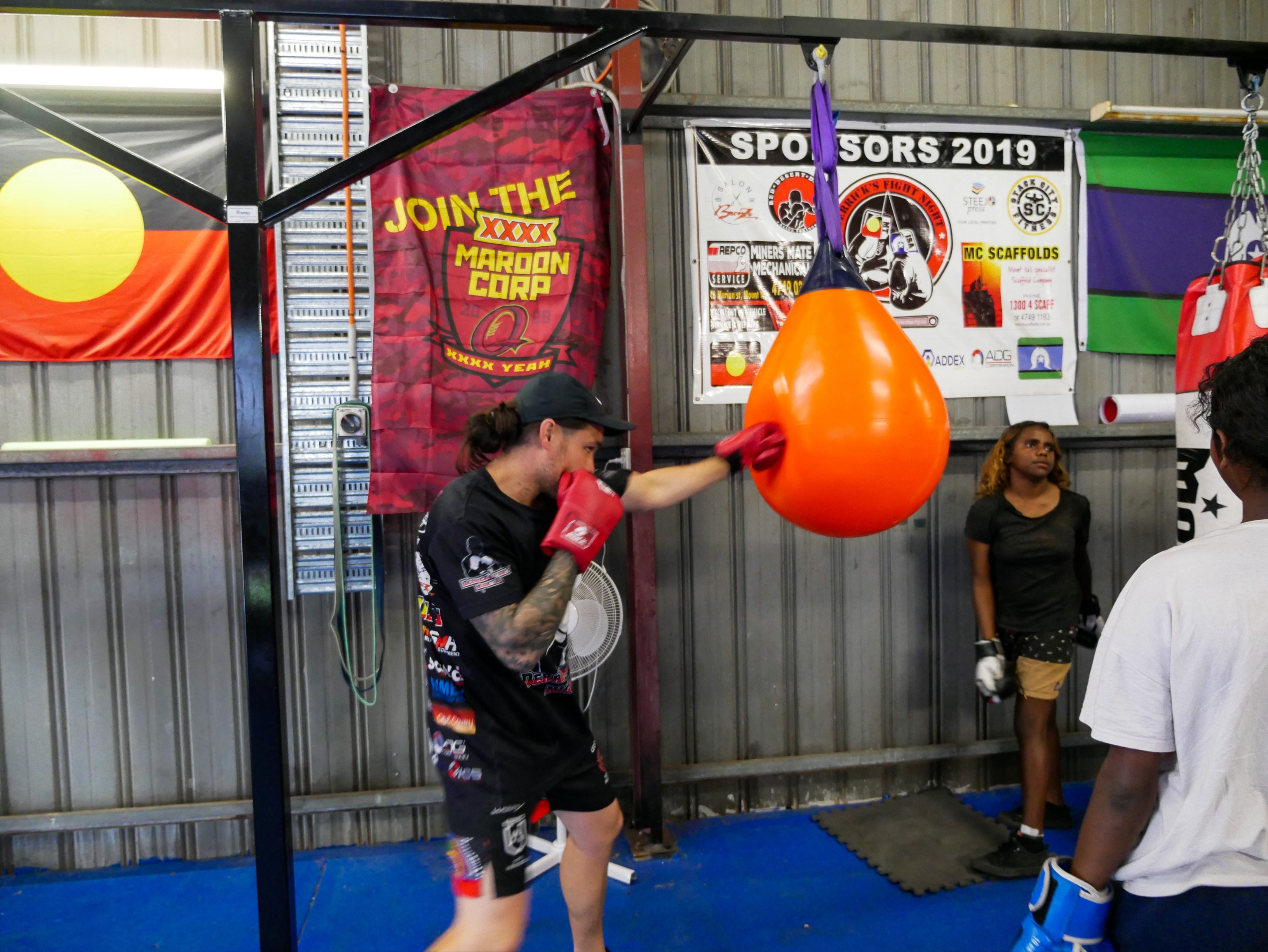 In between training, work, family life and his business, Mr Cusack finds time to train local Aboriginal kids at a boxing gym.