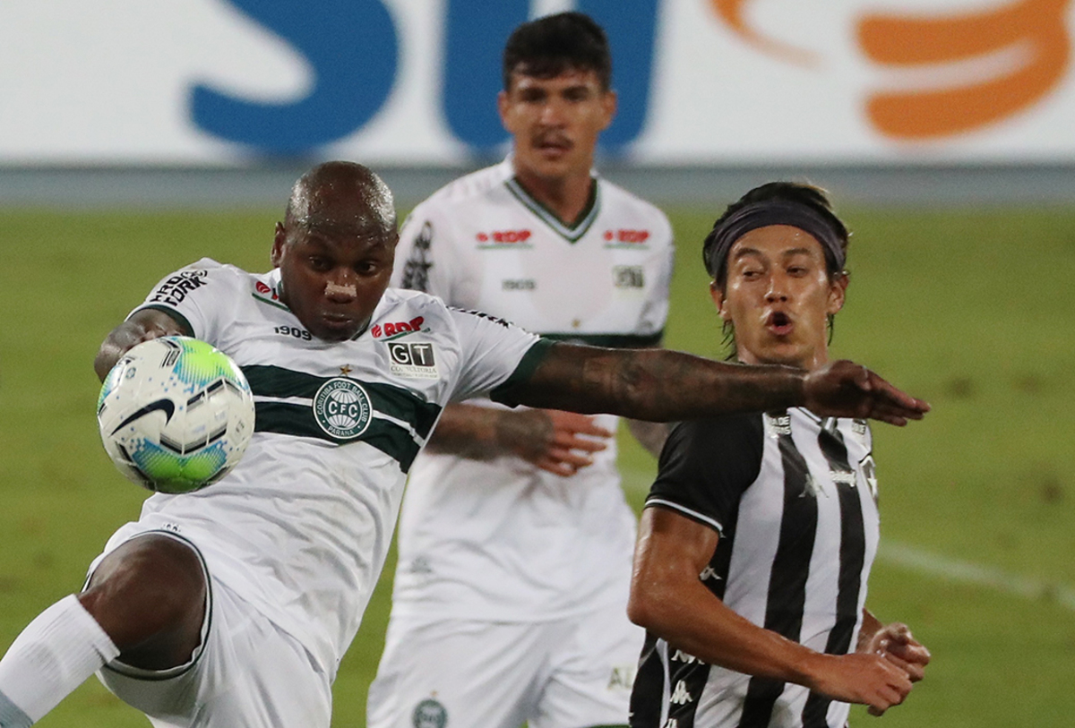 Soccer Football - Brasileiro Championship - Botafogo v Coritiba - Nilton Santos Stadium, Rio de Janeiro, Brazil - September 2, 2020 Coritiba's Sassa in action with Botafogo's Keisuke Honda, following the resumption of play behind closed doors after the outbreak of the coronavirus disease (COVID-19) REUTERS/Sergio MoraesSoccer Football - Brasileiro Championship - Botafogo v Coritiba - Nilton Santos Stadium, Rio de Janeiro, Brazil - September 2, 2020 Botafogo's Bruno Nazario in action with Coritiba's Matheus Bueno, following the resumption of play behind closed doors after the outbreak of the coronavirus disease (COVID-19) REUTERS/Sergio MoraesSoccer Football - Brasileiro Championship - Botafogo v Coritiba - Nilton Santos Stadium, Rio de Janeiro, Brazil - September 2, 2020 Botafogo's Pedro Raul in action with Coritiba's Galdezani, following the resumption of play behind closed doors after the outbreak of the coronavirus disease (COVID-19) REUTERS/Sergio Moraes