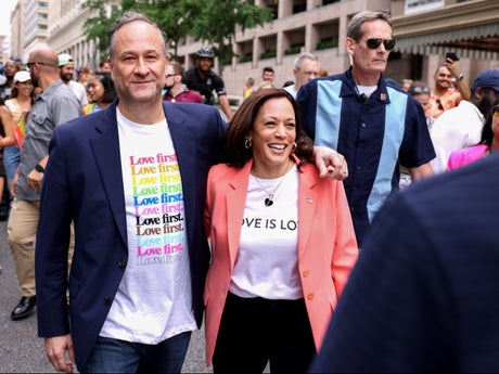 Ms Harris and her husband, second gentleman Doug Emhoff, were among the crowds at Capital Pride in Washington DC on Saturday 12 June.