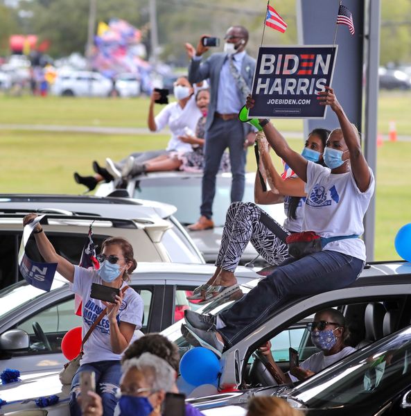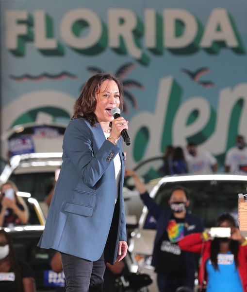 Democratic vice presidential nominee Sen. Kamala Harris delivers remarks during an early-voting event at the Central Florida Fairground, Monday, October 19, 2020. (Joe Burbank/Orlando Sentinel/TNS)Supporters wait for Democratic vice presidential nominee Sen. Kamala Harris to arrive at an early-voting event at the Central Florida Fairgrounds in Orlando, Monday, October 19, 2020. (Joe Burbank/Orlando Sentinel/TNS)Supporters wait for Democratic vice presidential nominee Sen. Kamala Harris to arrive at an early-voting event at the Central Florida Fairgrounds in Orlando, Monday, October 19, 2020. (Joe Burbank/Orlando Sentinel/TNS)Supporters cheer Democratic vice presidential nominee Sen. Kamala Harris she delivers remarks during an early-voting event at the Central Florida Fairground, Monday, October 19, 2020. Trump supporters demonstrate nearby (background.) (Joe Burbank/Orlando Sentinel/TNS)Supporters cheer Democratic vice presidential nominee Sen. Kamala Harris she delivers remarks during an early-voting event at the Central Florida Fairground, Monday, October 19, 2020. Trump supporters demonstrate nearby (background.) (Joe Burbank/Orlando Sentinel/TNS)A gust of wind hits Democratic vice presidential nominee Sen. Kamala Harris as she arrives at Orlando International Airport, Monday, October 19, 2020. Harris is in Orlando to attend an early-voting event at the Central Florida Fairgrounds. (Joe Burbank/Orlando Sentinel/TNS)Democratic vice presidential nominee Sen. Kamala Harris responds to cheering supporters as she takes the stage for an early-voting event at the Central Florida Fairgrounds, Monday, October 19, 2020. (Joe Burbank/Orlando Sentinel/TNS)A gust of wind blows the hair of Democratic vice presidential nominee Sen. Kamala Harris as she arrives at Orlando International Airport, Monday, October 19, 2020. Harris is in Orlando to attend an early-voting event at the Central Florida Fairground with Rep. Val Demings. (Joe Burbank/Orlando Sentinel/TNS)A gust of wind hits Democratic vice presidential nominee Sen. Kamala Harris as she arrives at Orlando International Airport, Monday, October 19, 2020. Harris is in Orlando to attend an early-voting event at the Central Florida Fairgrounds. (Joe Burbank/Orlando Sentinel/TNS)Democratic vice presidential nominee Sen. Kamala Harris waves goodbye walking to her plane to depart Orlando International Airport, Monday, October 19, 2020, after delivering remarks at an early-voting event at the Central Florida Fairgrounds. (Joe Burbank/Orlando Sentinel/TNS)Democratic vice presidential nominee Sen. Kamala Harris delivers remarks during an early-voting event at the Central Florida Fairgrounds, Monday, October 19, 2020. (Joe Burbank/Orlando Sentinel/TNS)Democratic vice presidential nominee Sen. Kamala Harris responds to cheering supporters as she takes the stage for an early-voting event at the Central Florida Fairgrounds in Orlando, Monday, October 19, 2020. (Joe Burbank/Orlando Sentinel/TNS)Democratic vice presidential nominee Sen. Kamala Harris responds to cheering supporters as she takes the stage for an early-voting event at the Central Florida Fairground, Monday, October 19, 2020. (Joe Burbank/Orlando Sentinel/TNS)Democratic vice presidential nominee Sen. Kamala Harris delivers remarks during an early-voting event at the Central Florida Fairground, Monday, October 19, 2020. (Joe Burbank/Orlando Sentinel/TNS)Democratic vice presidential nominee Sen. Kamala Harris responds to cheering supporters as she takes the stage for an early-voting event at the Central Florida Fairground, Monday, October 19, 2020.(Joe Burbank/Orlando Sentinel/TNS)Democratic vice presidential nominee Sen. Kamala Harris delivers remarks during an early-voting event at the Central Florida Fairgrounds, in Orlando, Fla., Monday, October 19, 2020. (Joe Burbank/Orlando Sentinel/TNS)