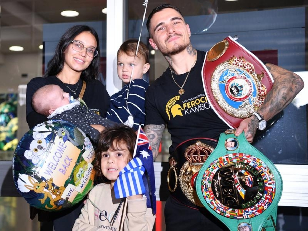 Champion boxer George Kambosos is vowing to reign for years to come after arriving home to a hero's reception in Sydney.
