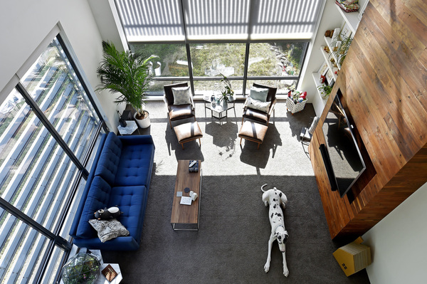 "You let the sun warm the floor, so the concrete absorbs the heat and gives it off at night," Rockhill says. (The Iiamses have since added gray carpet.) Conversely, louvers on a screen outside the windows have been angled to keep the sun from shining into the house when it is higher in the sky during the summer.
