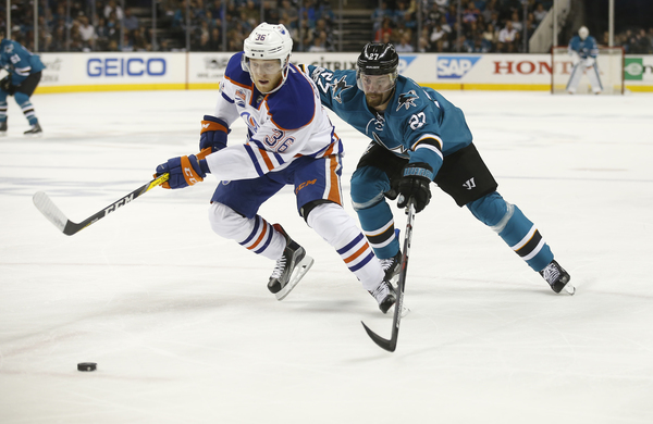Kane checked Benning off the puck in the Oilers' zone to the right of goalie Cam Talbot. Benning went down in a heap on the questionable hit, Kane got the puck back and sent it toward the net, where Joe Pavelski deflected it in for his 16th goal of the season at the 1:20 mark.