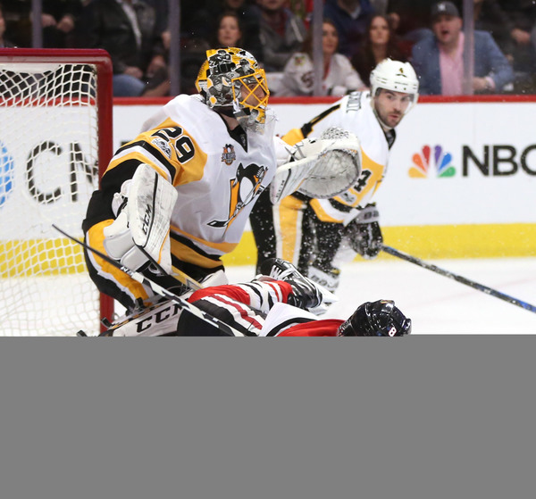 The Hawks got their second goal with 23.9 seconds remaining in the second period when Richard Panik executed a pretty toe drag to get around Evgeni Malkin and send a shot top left corner on Fleury for a 2-1 lead.