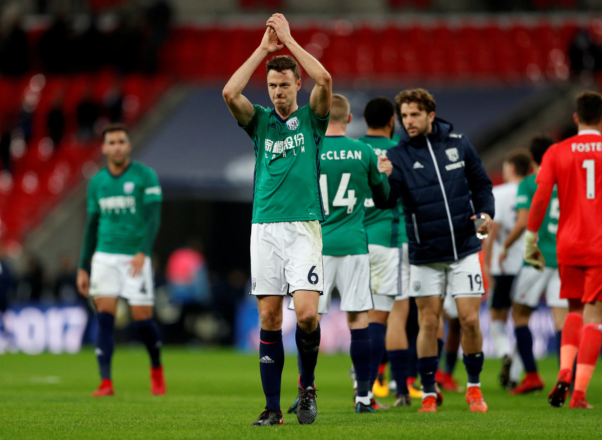 Soccer Football - Premier League - Tottenham Hotspur vs West Bromwich Albion - Wembley Stadium, London, Britain - November 25, 2017 West Bromwich Albion's Jonny Evans applauds the fans after the match Action Images via Reuters/John Sibley
