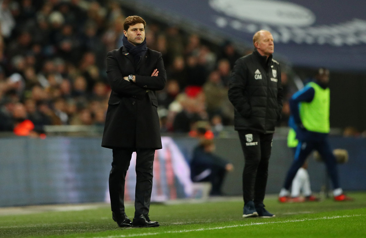Soccer Football - Premier League - Tottenham Hotspur vs West Bromwich Albion - Wembley Stadium, London, Britain - November 25, 2017 West Bromwich Albion's Jonny Evans in action with Tottenham's Harry Kane and Son Heung-min REUTERS/Hannah McKay Soccer Football - Premier League - Tottenham Hotspur vs West Bromwich Albion - Wembley Stadium, London, Britain - November 25, 2017 Tottenham manager Mauricio Pochettino and West Bromwich Albion caretaker manager Gary Megson REUTERS/Hannah McKay