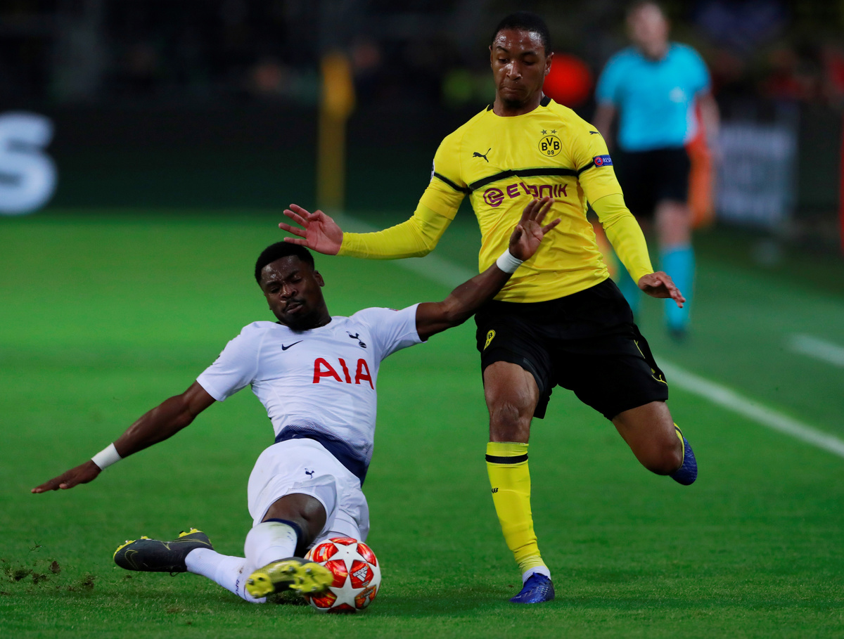 Soccer Football - Champions League - Round of 16 Second Leg - Borussia Dortmund v Tottenham Hotspur - Signal Iduna Park, Dortmund, Germany - March 5, 2019 Tottenham's Serge Aurier in action with Borussia Dortmund's Abdou Diallo Action Images via Reuters/Andrew Couldridge