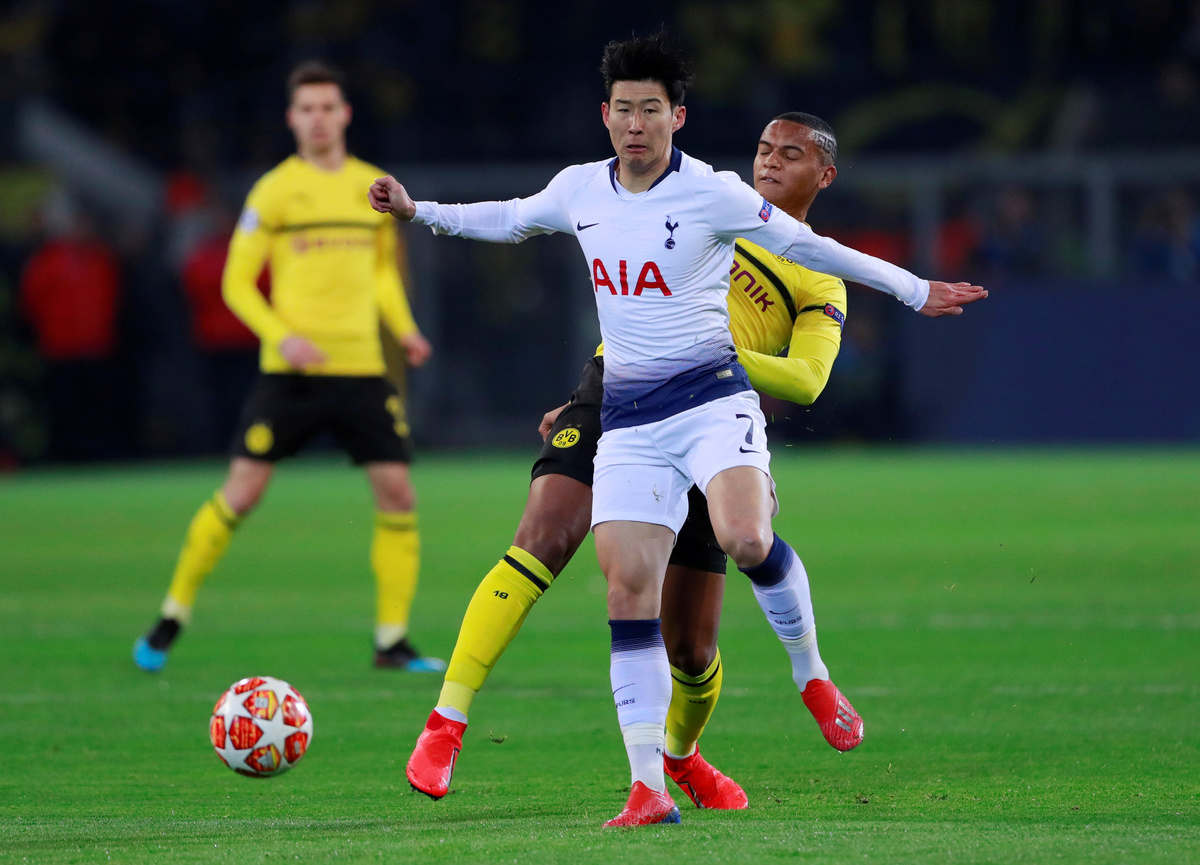 Soccer Football - Champions League - Round of 16 Second Leg - Borussia Dortmund v Tottenham Hotspur - Signal Iduna Park, Dortmund, Germany - March 5, 2019 Tottenham's Hugo Lloris during the match REUTERS/Wolfgang RattaySoccer Football - Champions League - Round of 16 Second Leg - Borussia Dortmund v Tottenham Hotspur - Signal Iduna Park, Dortmund, Germany - March 5, 2019 Borussia Dortmund's Marco Reus reacts after conceding their frsit goal scored by Tottenham's Harry Kane REUTERS/Wolfgang RattaySoccer Football - Champions League - Round of 16 Second Leg - Borussia Dortmund v Tottenham Hotspur - Signal Iduna Park, Dortmund, Germany - March 5, 2019 Tottenham's Harry Kane scores their first goal Action Images via Reuters/Andrew CouldridgeSoccer Football - Champions League - Round of 16 Second Leg - Borussia Dortmund v Tottenham Hotspur - Signal Iduna Park, Dortmund, Germany - March 5, 2019 Borussia Dortmund's Jadon Sancho in action with Tottenham's Serge Aurier Action Images via Reuters/Andrew CouldridgeSoccer Football - Champions League - Round of 16 Second Leg - Borussia Dortmund v Tottenham Hotspur - Signal Iduna Park, Dortmund, Germany - March 5, 2019 Borussia Dortmund's Axel Witsel in action with Tottenham's Davinson Sanchez Action Images via Reuters/Andrew CouldridgeSoccer Football - Champions League - Round of 16 Second Leg - Borussia Dortmund v Tottenham Hotspur - Signal Iduna Park, Dortmund, Germany - March 5, 2019 Tottenham's Son Heung-min in action with Borussia Dortmund's Manuel Akanji Action Images via Reuters/Andrew Couldridge