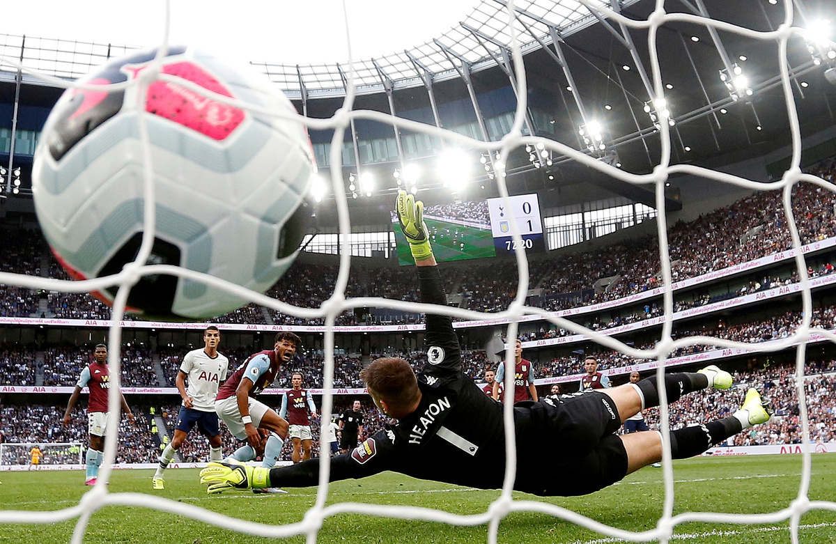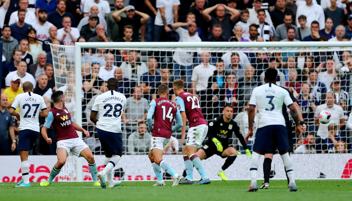 Villa keeper Tom Heaton made a great save to deny Davinson Sanchez but when the ball was fed back to Ndombele by Lucas Moura he picked out the corner of the goal.