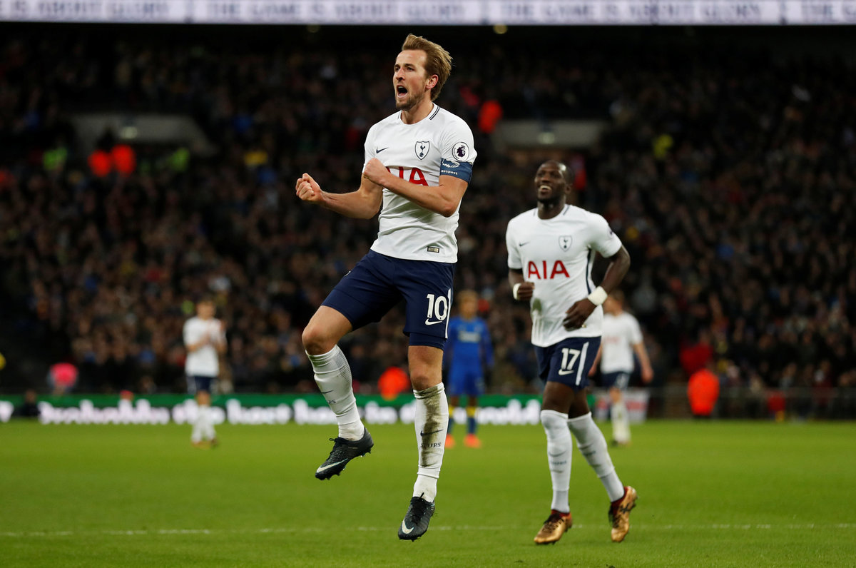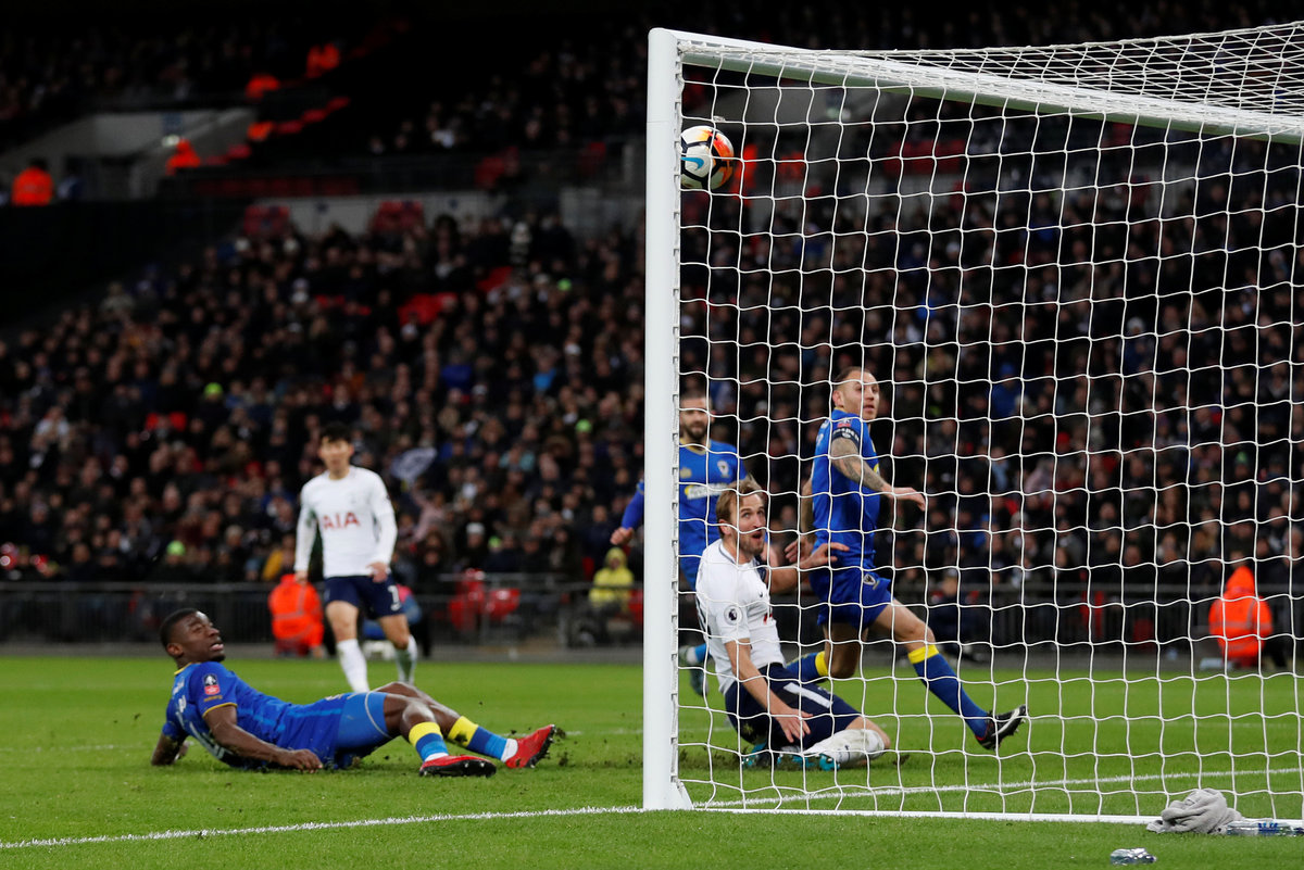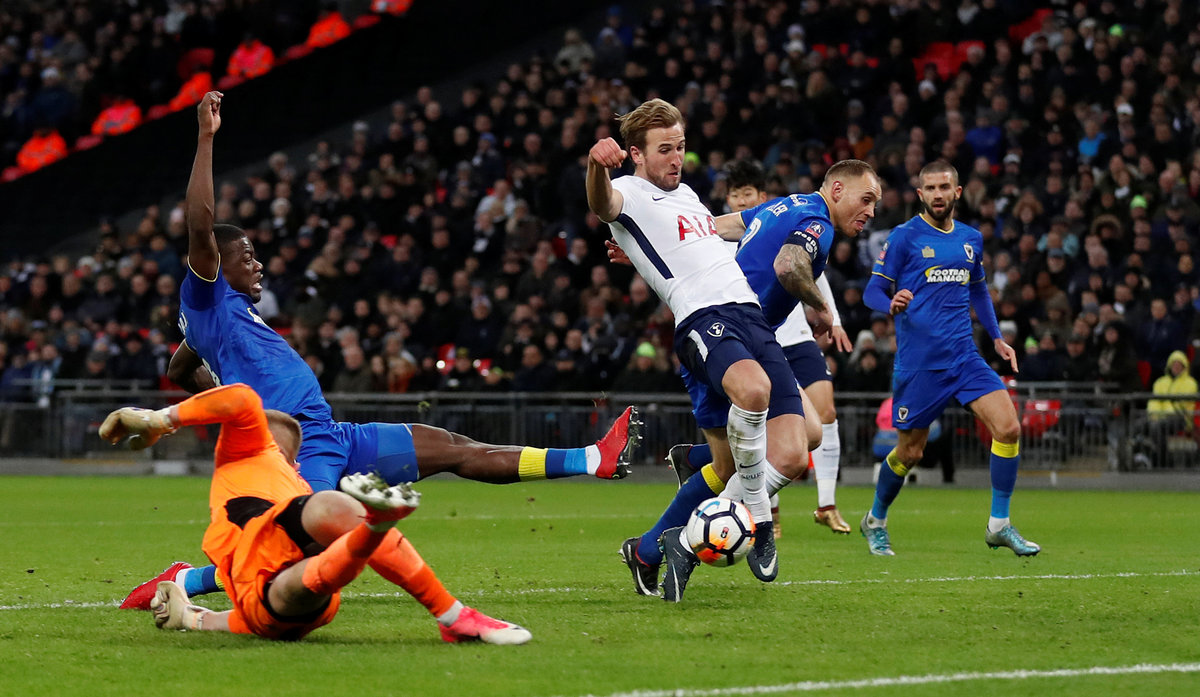 Soccer Football - FA Cup Third Round - Tottenham Hotspur vs AFC Wimbledon - Wembley Stadium, London, Britain - January 7, 2018 Tottenham's Harry Kane celebrates scoring their second goal with team mates Action Images via Reuters/Matthew ChildsSoccer Football - FA Cup Third Round - Tottenham Hotspur vs AFC Wimbledon - Wembley Stadium, London, Britain - January 7, 2018 Tottenham's Harry Kane celebrates scoring their second goal Action Images via Reuters/Matthew ChildsSoccer Football - FA Cup Third Round - Tottenham Hotspur vs AFC Wimbledon - Wembley Stadium, London, Britain - January 7, 2018 Tottenham's Harry Kane scores their first goal Action Images via Reuters/Matthew Childs