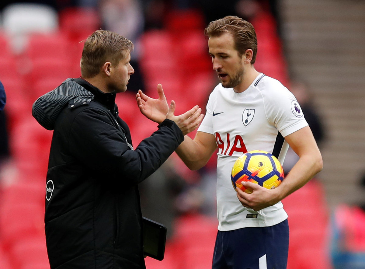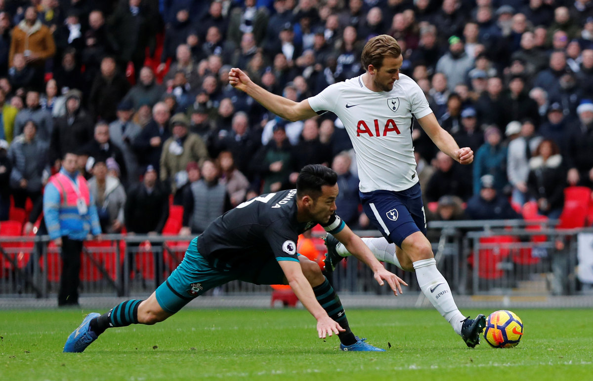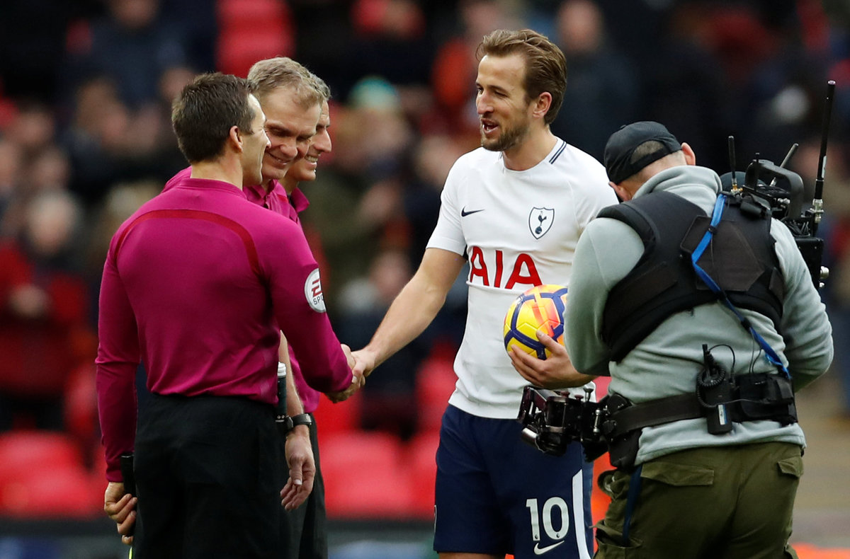 Soccer Football - Premier League - Tottenham Hotspur vs Southampton - Wembley Stadium, London, Britain - December 26, 2017 Tottenham's Harry Kane misses a chance to score REUTERS/Eddie Keogh Soccer Football - Premier League - Tottenham Hotspur vs Southampton - Wembley Stadium, London, Britain - December 26, 2017 Tottenham's Harry Kane scores their fifth goal to complete his hat-trick REUTERS/Eddie Keogh Soccer Football - Premier League - Tottenham Hotspur vs Southampton - Wembley Stadium, London, Britain - December 26, 2017 Tottenham's Harry Kane celebrates with the match ball after the match REUTERS/Eddie Keogh Soccer Football - Premier League - Tottenham Hotspur vs Southampton - Wembley Stadium, London, Britain - December 26, 2017 Tottenham's Harry Kane shakes hands with the match officials as he celebrates after the match Action Images via Reuters/Paul Childs