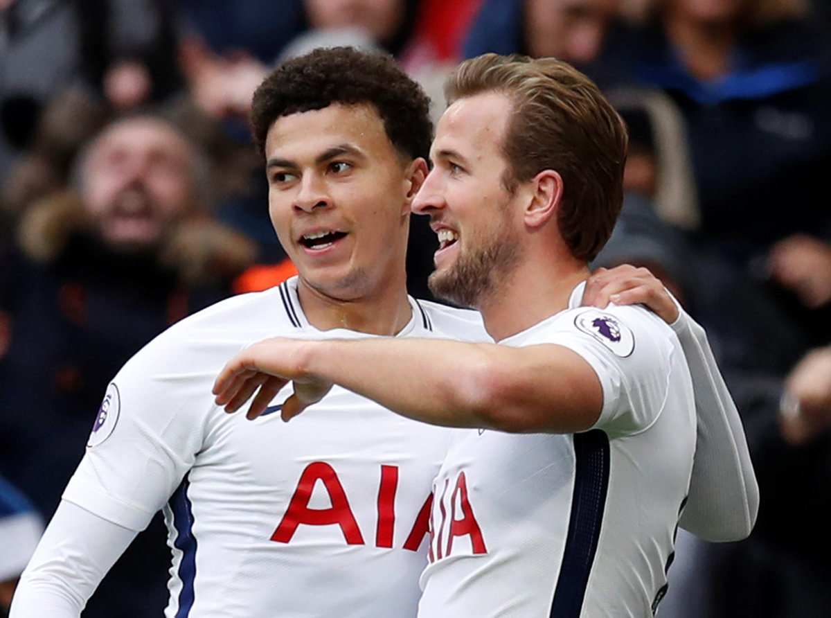 Soccer Football - Premier League - Tottenham Hotspur vs Southampton - Wembley Stadium, London, Britain - December 26, 2017 Tottenham's Harry Kane celebrates scoring their fifth goal and completing a hat-trick with Dele Alli REUTERS/Eddie Keogh