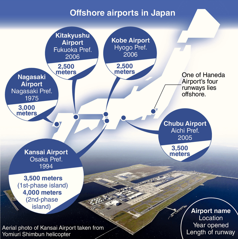 Constructing offshore airports is understandable for Japan, which has limited usable land. The airport served as a pioneer for Chubu Centrair International Airport, which opened in 2005, and Kobe Airport and Kitakyushu Airport, both of which opened in 2006.