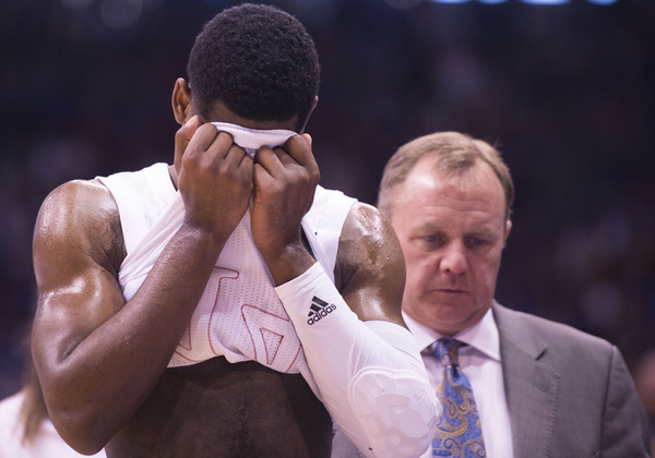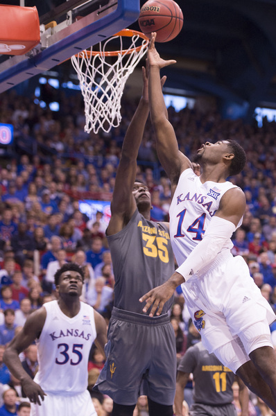 KU led the Sun Devils 52-50 with 15 minutes, 9 seconds left before ASU went on a 15-0 run to grab a 65-52 lead at 11:09. Martin, Holder and Evans had had four points apiece in the run, while KU was 0-for-6 with four turnovers in that span.