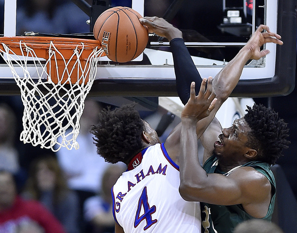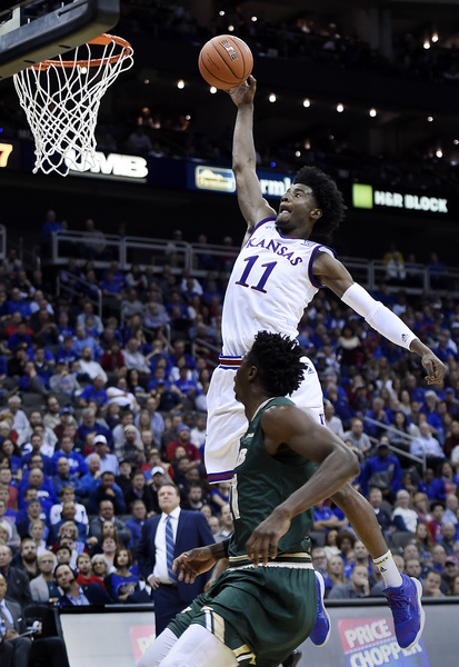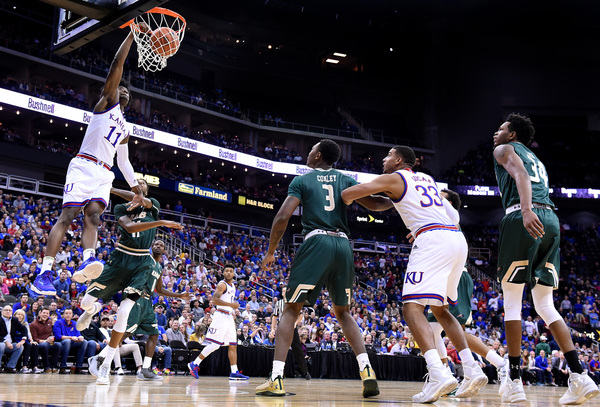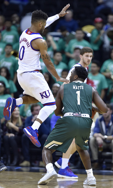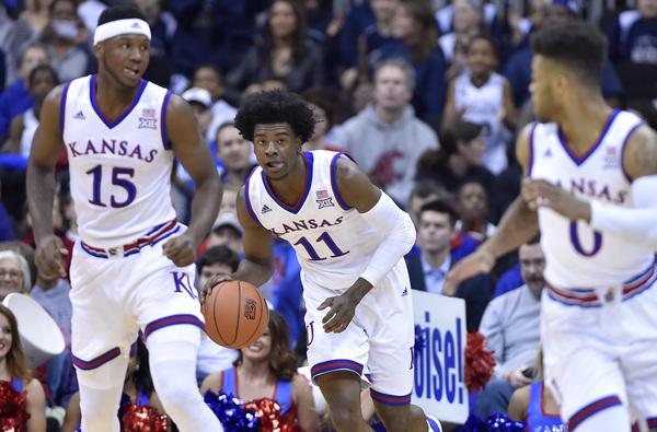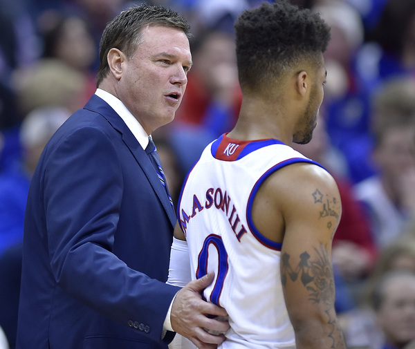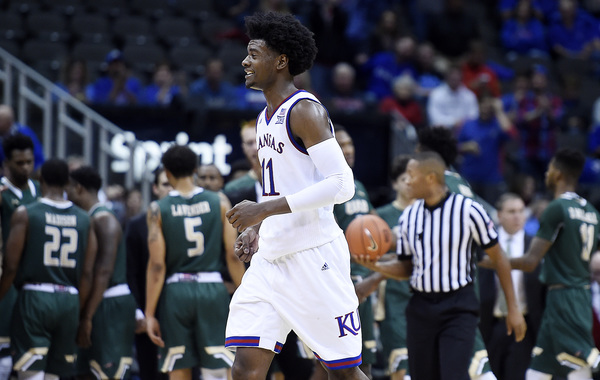 Devonte Graham had nine points, Frank Mason seven and Josh Jackson six in helping KU blaze to its early 25-3 lead. They finished with 16, 20 and 22 points, respectively. Svi Mykhailiuk (four 3s) had 15 on a night KU hit 50.8 percent of its shots and 12 of 27 3s.