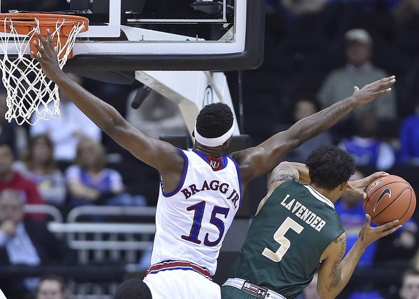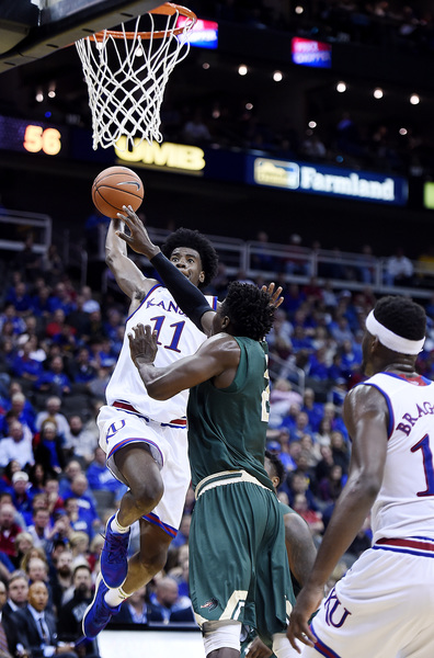 KU started the second half Monday almost as torrid at the first, going on a 9-0 run to build an 18-point lead (48-30) at 15:58. Mason had four in that early surge. However, the Blazers, who missed their first four shots of the second half, were able to slice the deficit to 10 (48-38) at 12:40.