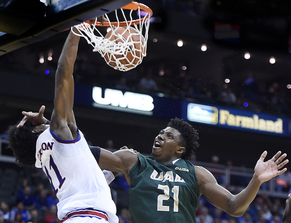Graham scored 12 points the first half, Mason 10 and Jackson 11, yet the Jayhawks only held a 39-30 lead at the break. UAB closed the half on a 27-14 run.