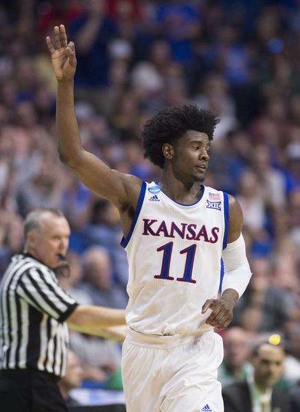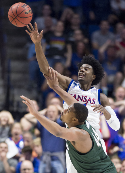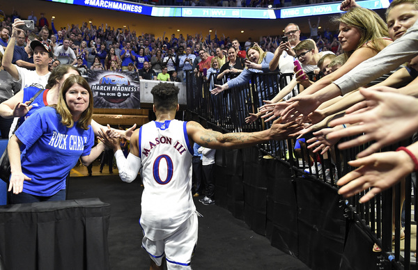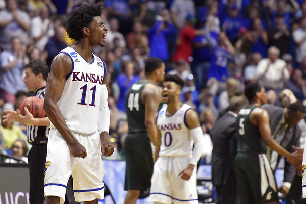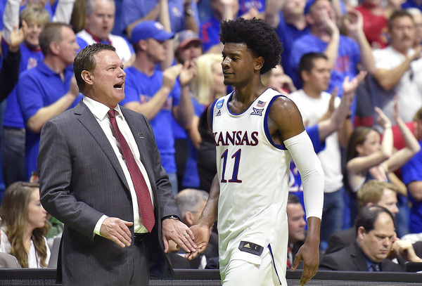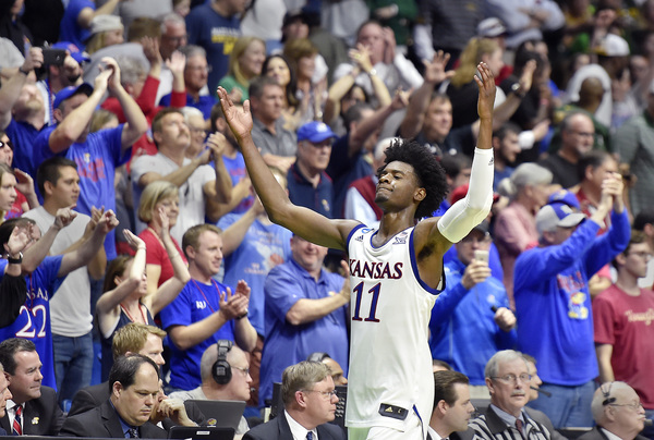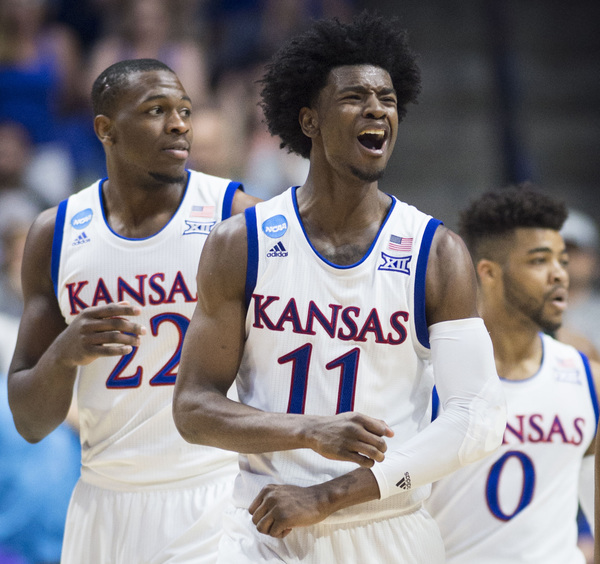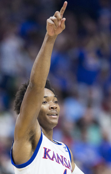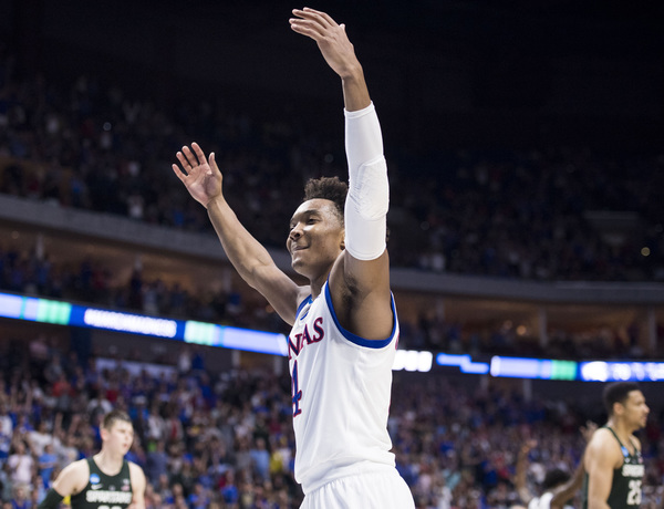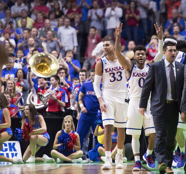 However, KU went on a 8-1 run to build the lead to at that time a game-high 12 points, 77-65, at 5:45. Lucas had a bucket to open that run and make it 71-64. Then after a Bridges free throw, Mason scored, Jackson hit two free throws and Jackson scored another bucket. KU grabbed a 13-point lead at 4:41 on a three by Graham to make it 80-67.