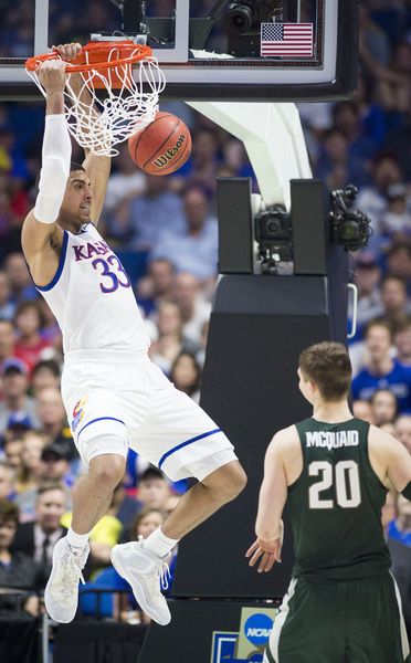 The Jayhawks (30-4), the No. 1 seed in the NCAA Tournament's Midwest Regional, polished off No. 9 seed Michigan State, 90-70, on Sunday at BOK Center and in the process assured a spot in Thursday's Sweet 16 contest against No. 4 seed Purdue at the Sprint Center.