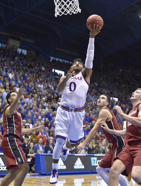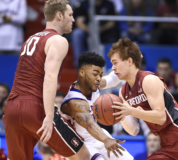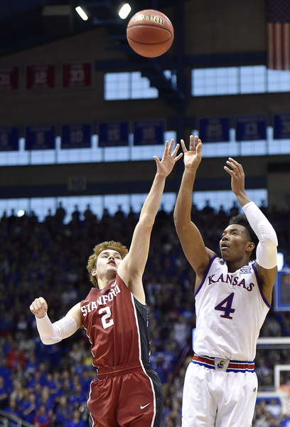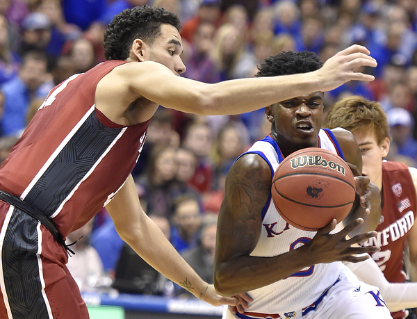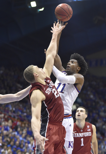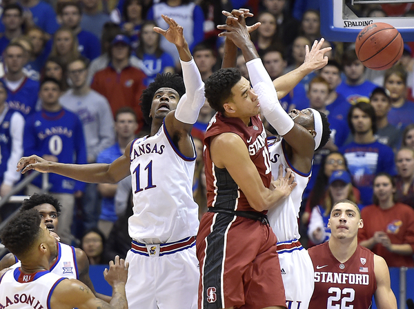 Stanford forward Reid Travis scored a career-high 29 points. He hit 19 of 22 free throws in setting a record for most free-throw attempts by a KU opponent. Craig Brackins of Iowa State had 21 attempts in 2009.
