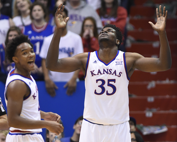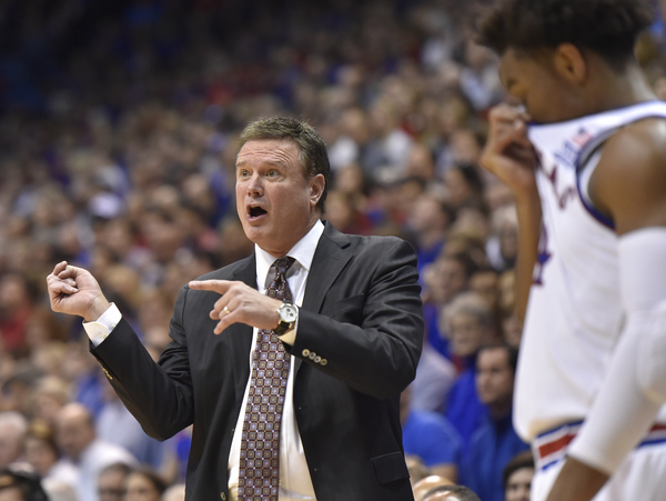 It was several current KU guards, not the visiting coach, however, who stole the show on this day. Devonte Graham cashed five 3-pointers in the first half in staking the Jayhawks to a 43-35 halftime advantage. He finished with 15 points. Frank Mason (20 points, five assists), who had eight points the first half, hit a spectacular driving, reverse layup (and ensuing foul shot) in the second half.