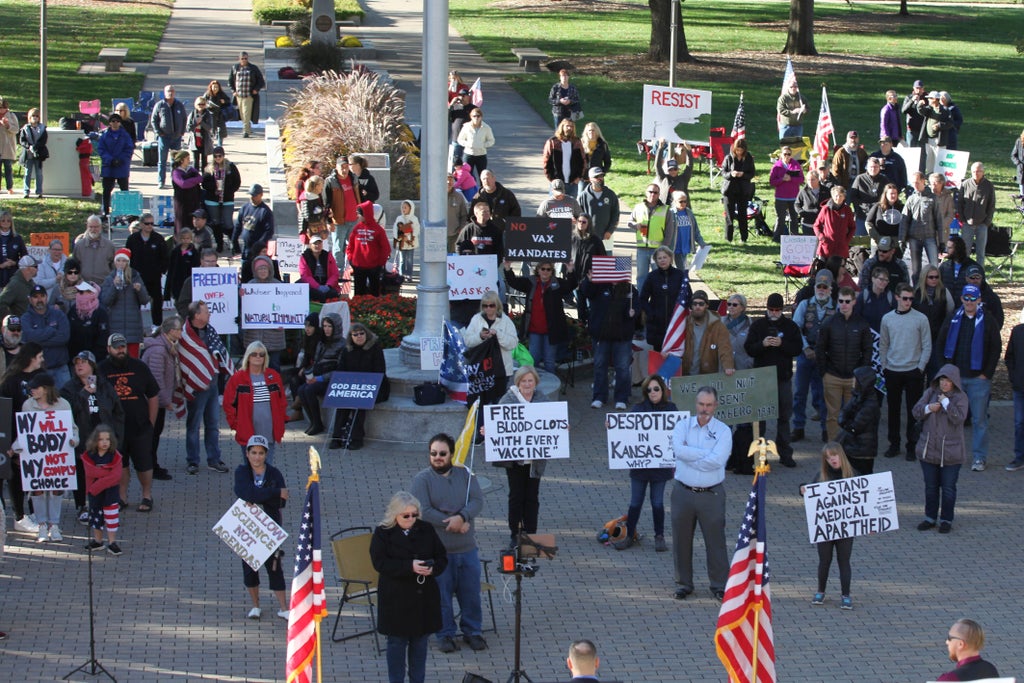 The rally kicked off ahead of a rare weekend legislative committee hearing on mandates that affect as many as 100 million Americans. The hearing gave dozens of mandate opponents a chance to vent their frustration and anger both with the Democratic president's administration and Democratic Gov. Laura Kelly s handling of the coronavirus pandemic.
