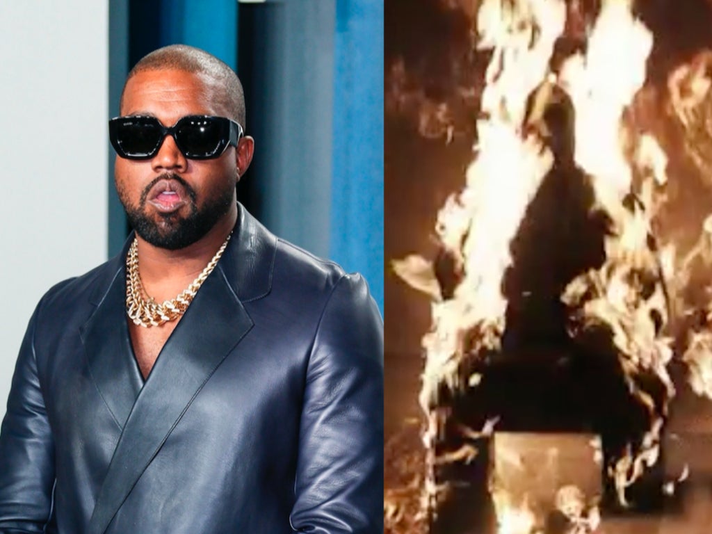 Kanye West set himself on fire as part of a planned stunt during his listening party for his forthcoming Donda on Thursday.