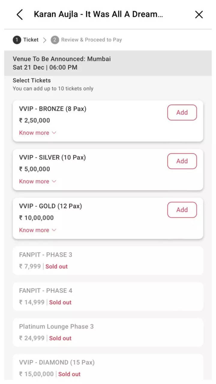 Tickets priced at Rs 7999, Rs 14999 and Rs 24999 have also sold out.
