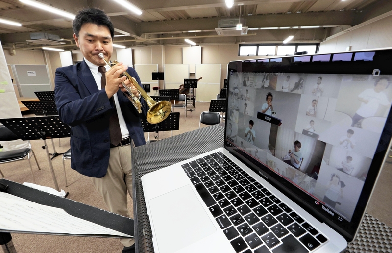 Amateur trumpeter Kensaku Kojiri from Nishinomiya, Hyogo Prefecture, who plays in an ensemble, has been using the videos to practice.