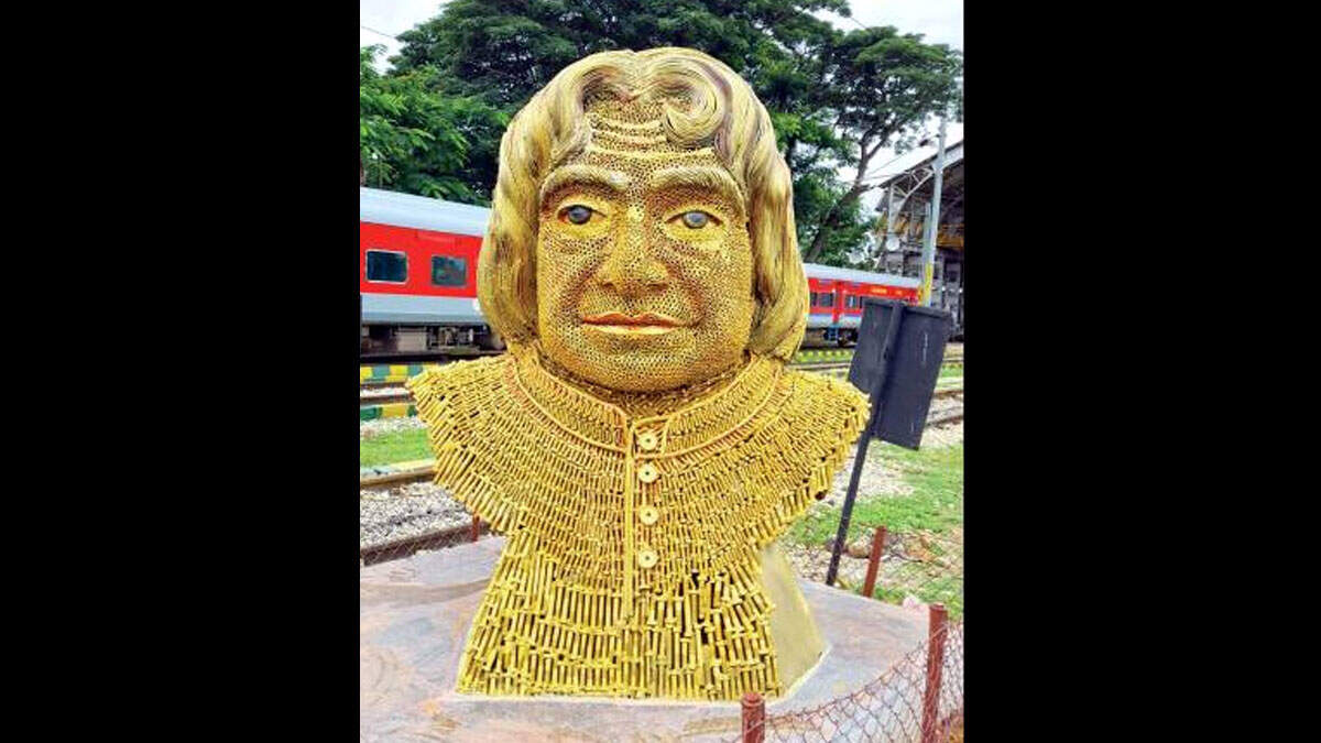 BENGALURU: A bust of former President of India APJ Abdul Kalam made from scrap materials is the new attraction at Yeshwantpur.