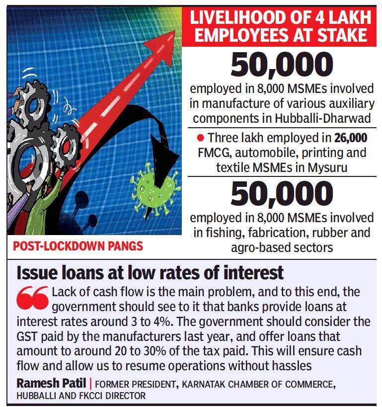 Despite the restrictions being eased gradually and the government permitting the units to resume operations, these enterprises continue to face a host of other problems, ranging from lack of skilled manpower to the inflated price of raw materials. In Dharwad, Dakshina Kannada and Mysuru districts, more than 40,000 MSMEs have been identified whose productivity has suffered.